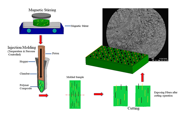 To fabricate the composite, the TPU is The zylon and carbon fiber are added until there is one homogenous mixture. The material was then dried and cut up into pellet sized pieces to place in the injection molder.